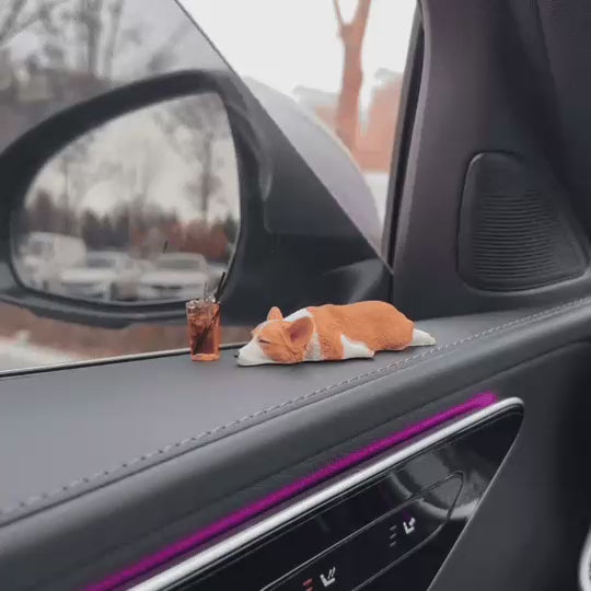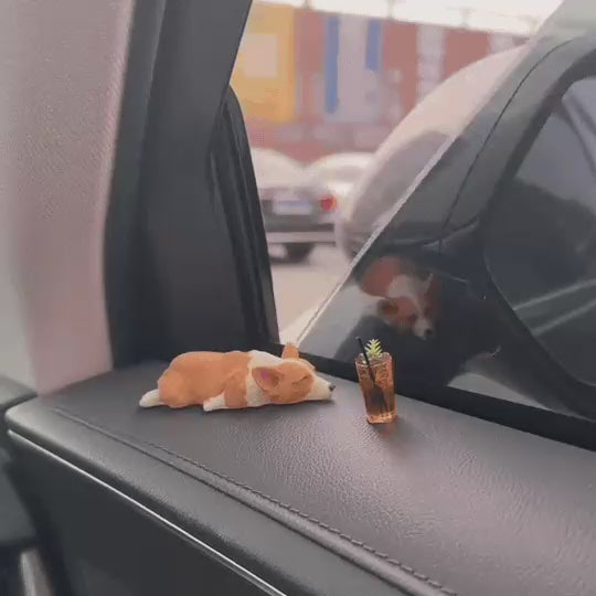 🐶🍹 Cute Corgi Figurine & Refreshing Drink - Perfect Car Decor 🌟