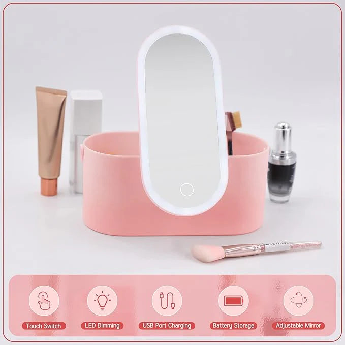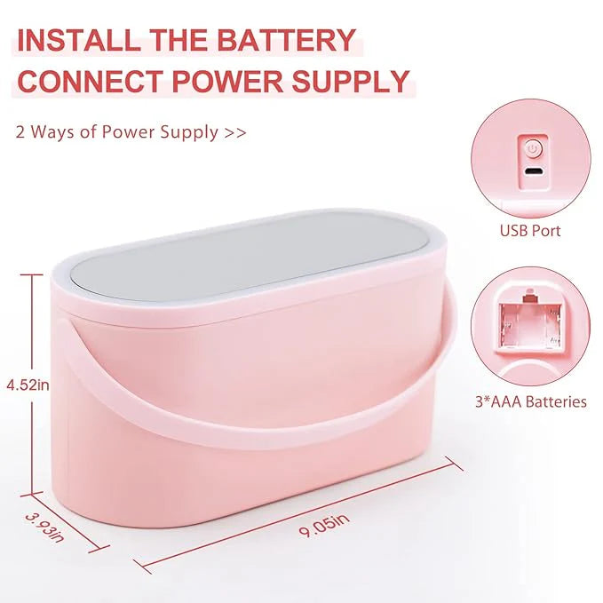 Simplify your beauty routine with our all-in-one GlowTravel Makeup Organizer Box. This compact yet comprehensive solution includes a built-in LED mirror that ensures perfect lighting, making it ideal for both home and travel use.