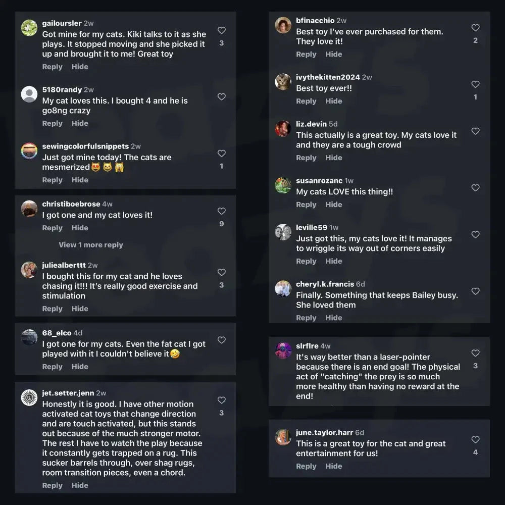The Speedy Tail's unique design keeps your cat active with engaging, safe play. Its quiet motor and durable build ensure fun without disturbing your home.